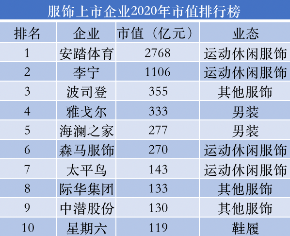 从2020年上市服饰公司的市值排名可以看出,前十大市值企业中,波司登是唯一一家主品牌为单一季节产品的公司,而它还把市值做到了行业第三。