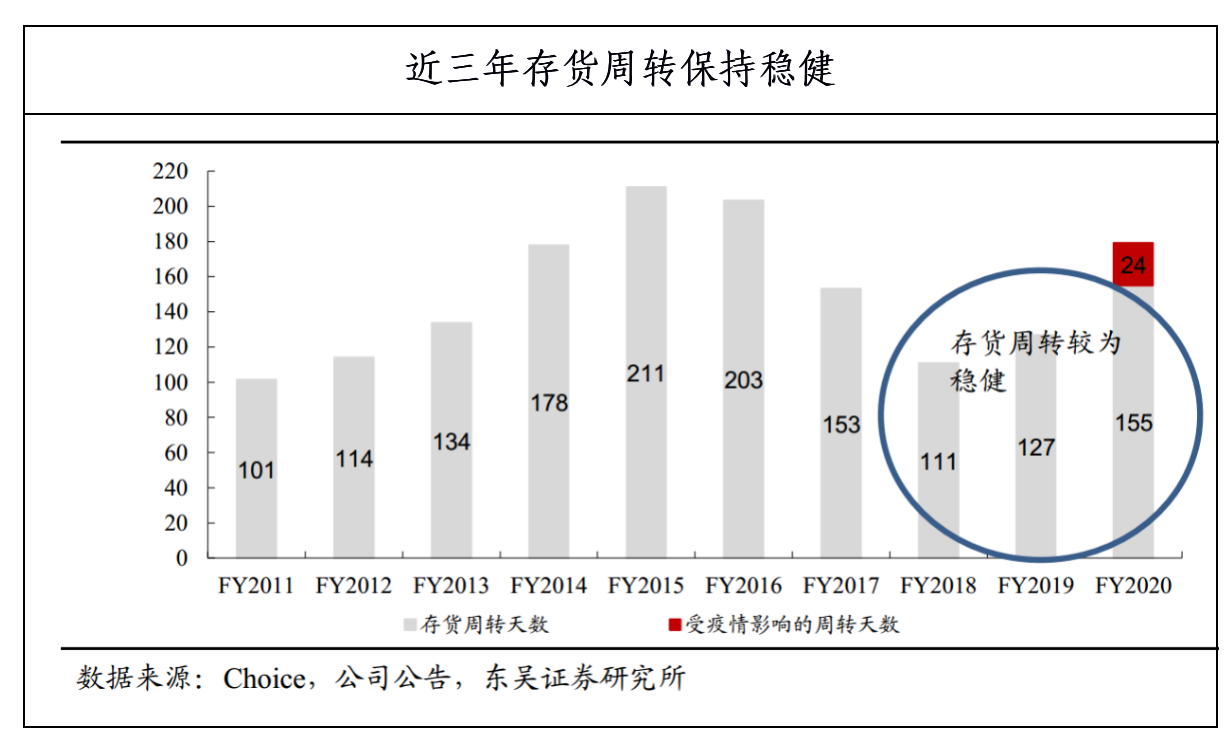现在,波司登的存货周转天数即使与大众休闲服饰品牌对比,也毫不逊色。