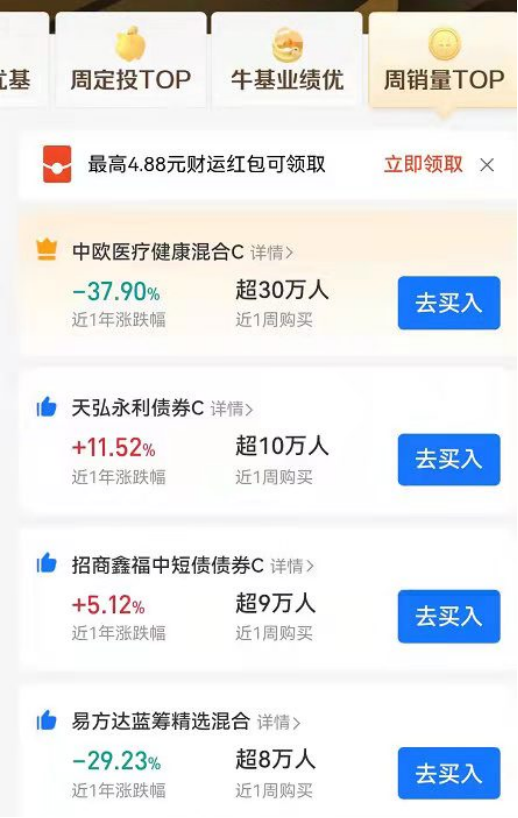 事实上,支付宝隐藏中欧医疗的排名,对于目前陷入“沉没成本”怪圈的基民们而言,也是浇灭“上头情绪”的一盆冷水,能帮助基民们更好地冷静下来。