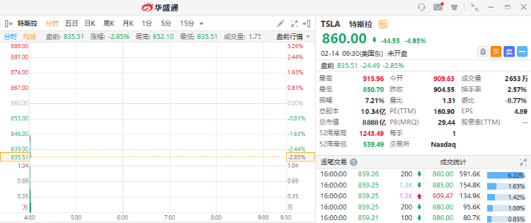 华盛资讯2月14日消息,美股盘前,特斯拉(TSLA)盘前跌超2%,1月中国产汽车销量环比下降15.5%至59845辆。