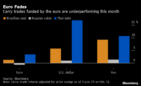 欧洲央行本月作出了鹰派转变,并可能会在2022年某个时候实现十多年来的首次加息。这推动欧元--长期以来一直是人们青睐的融资货币--走强。与此同时,越来越多的人认为美联储今年将不得不加息七次以控制不断飙升的消费价格,也让美元维持强势。甚至连日元也因俄罗斯和乌克兰之间的紧张局势而反弹。
