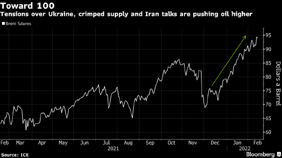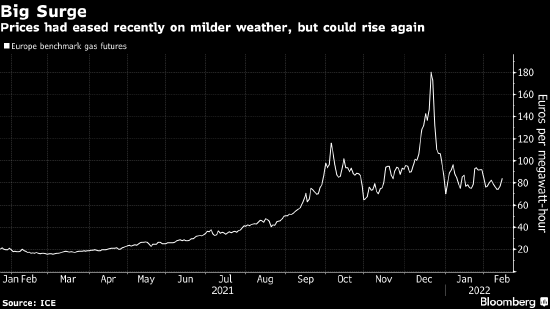 美国已经警告称,俄罗斯可能会最早在本周攻击其邻国,尽管莫斯科一再否认其计划入侵。市场几周来一直处于紧张状态,如果真的发生冲突--或是对俄罗斯制裁--可能会推动能源和食品价格进一步走高,并令欧洲陷入严重的供应危机。