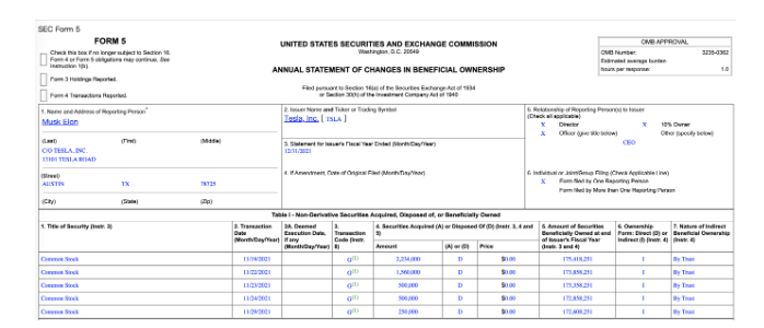 据提交给美国证券交易委员会(SEC)的一份文件,从去年11月19日至29日,马斯克捐赠了504.4万股特斯拉股票,价值约为57亿美元。受赠人是一家未指明的信托,文件没有提及该慈善机构的名称。值得注意的是,就在这笔捐赠发生之前,马斯克曾被联合国喊话捐款,以解决全球饥饿。