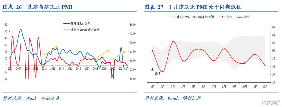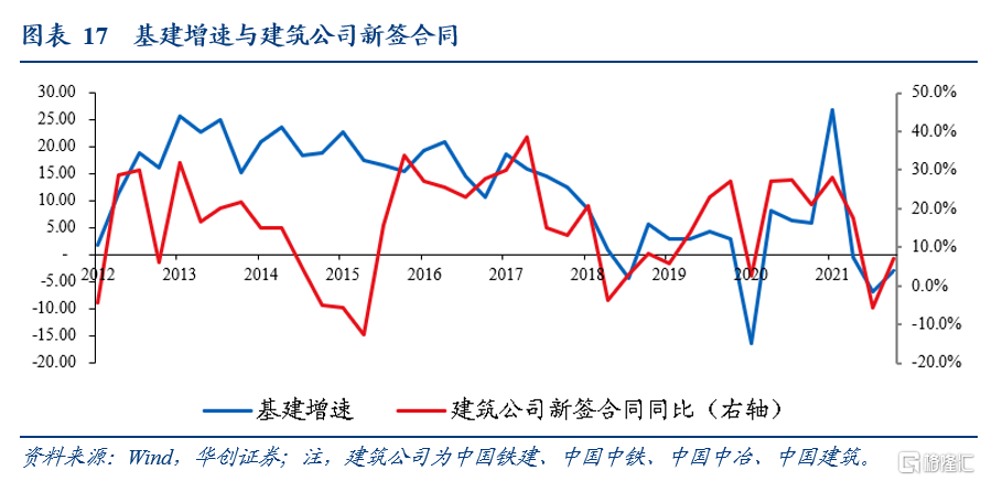 建筑业的订单可以观测两个指标,建筑业PMI新订单以及大型建筑公司的订单。与基建的增速同步或略有领先。