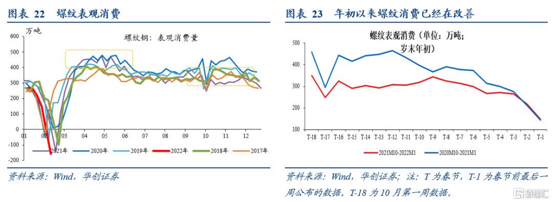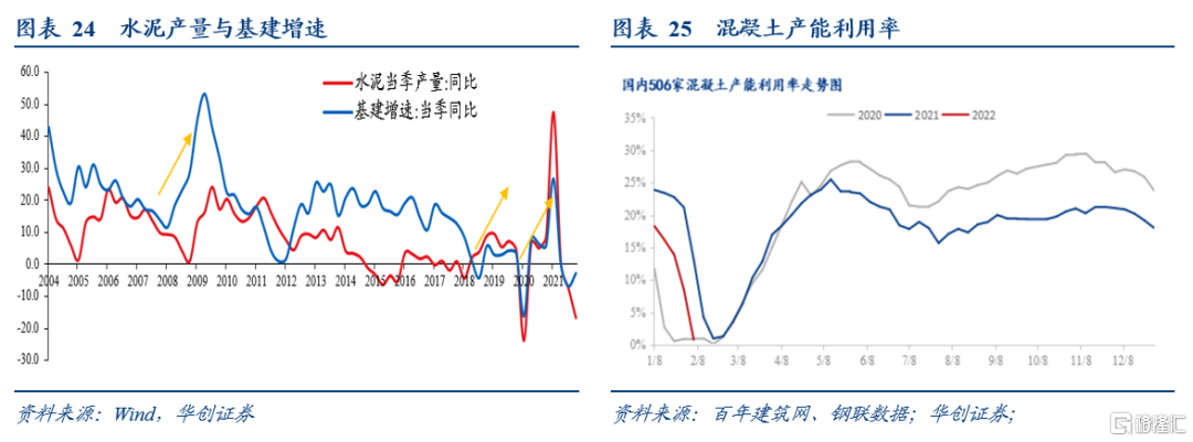 螺纹表观消费是很好的观测基建和地产新开工走势的指标。2018年Q4、2020年Q2,基建增速明显上行的季度,螺纹表观消费量同比增速高达7.2%、10.6%。