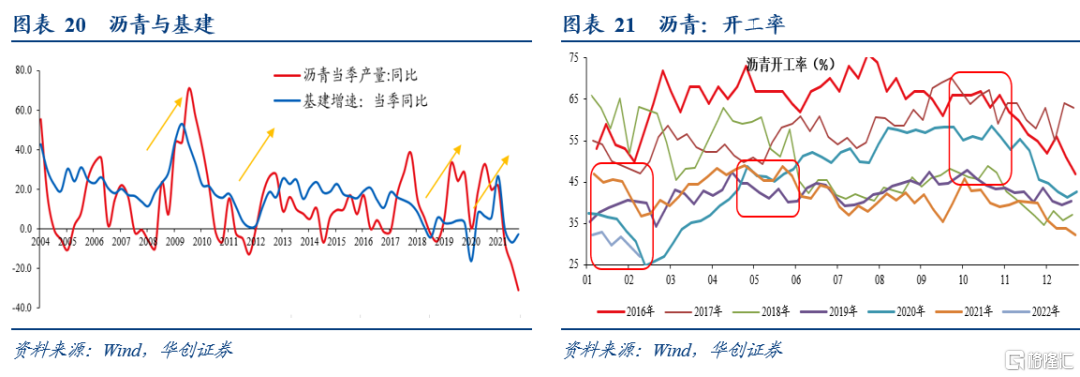 尽管严格意义上讲,不应该以一个工业品的产量代表需求。但观测沥青有两个好处。第一,剔除了地产的影响。沥青大部分用于道路施工。第二,过往数据来看,沥青产量是基建的一个有效的同比指标。过去四次基建上行,基本伴随着沥青产量增速的上行。