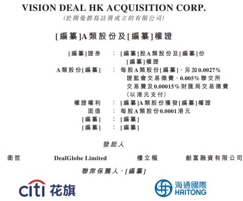 港交所近日披露,“特殊目的收购公司”(SPAC)Vision Deal递表港交所主板上市,花旗及海通国际担任联席保荐人。阿里巴巴前CEO卫哲、Deal Globe、楼立枢及创富融资为发起人。