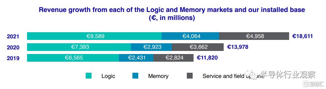 ASML CFO Roger Dassen表示,因为客户继续对先进和成熟节点的强劲需求,2021年逻辑系统的销售额增长了22亿欧元,增幅达30%;由于终端市场对服务器和智能手机的强劲需求,内存系统销售额增长了11亿欧元,增幅达39%。