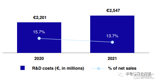 2020-2021年ASML研发投入(单位:百万欧元)
