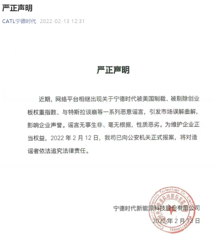 针对不实传闻,宁德时代火速声明并报警,特斯拉方面也出面澄清双方并未谈崩,这才使得公司股价近三日出现较强的反弹走势。