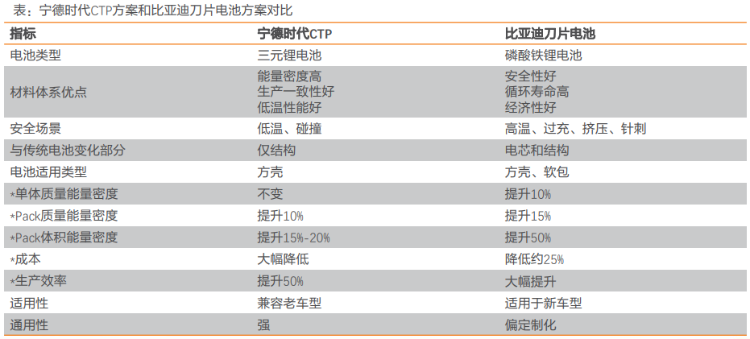 宁德时代与比亚迪电池方案对比 来源:天风证券