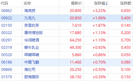 瑞信发表报告指出,内地餐饮板块仍然疫弱,但2022年初至今复苏趋势,相对2021年第4季稳定,相信行业最坏情况已过。由于第4季及首季数字触底,预期内地餐饮板块会于今年余下时间录显著复苏,行业首选九毛九,评级跑赢大市,目标价23港元。