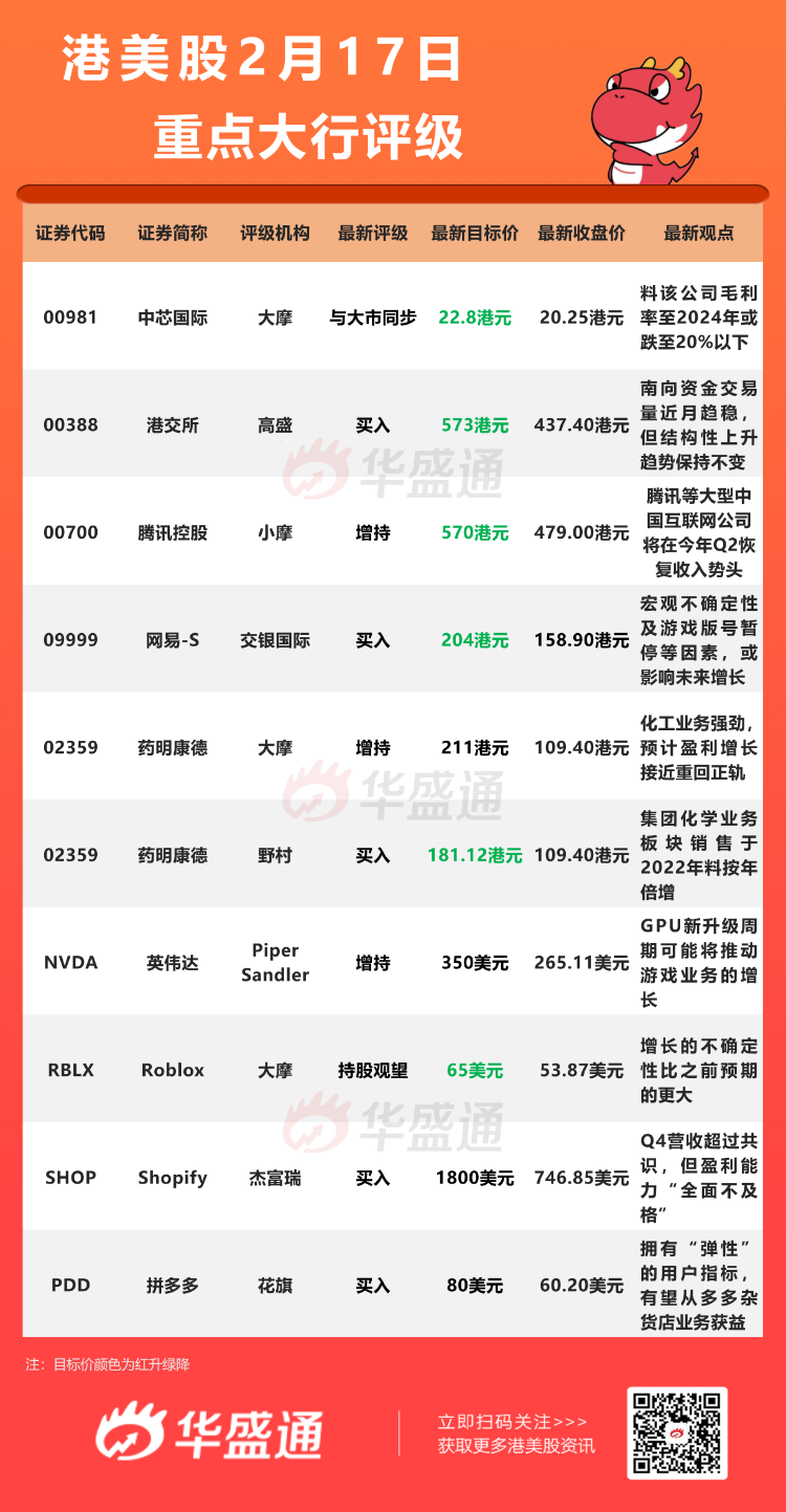 交银国际发布研究报告称,维持网易-S“买入”评级,基于宏观不确定性及游戏版号暂停等因素,影响未来游戏增长,目标价由209港元降2.4%至204港元。