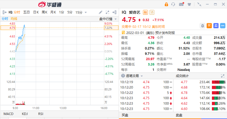 华盛资讯2月17日消息,美股盘初,热门中概股逆势走强,截至发稿,爱奇艺(IQ)涨超7%。