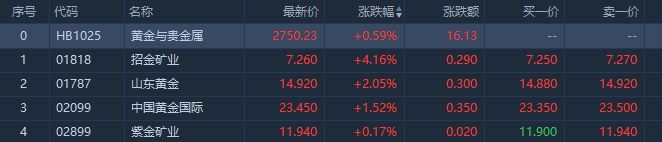 华盛资讯2月18日讯,黄金股走强,招金矿业涨4.16%,山东黄金涨2.05%,中国黄金国际涨1.52%,紫金矿业涨0.17%