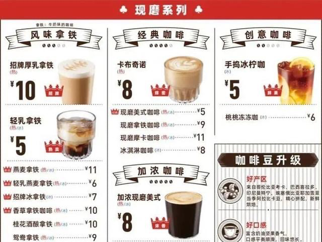 整体价格在10元左右的幸运咖,探索出了一条小镇平价咖啡的路径,率先在小镇掘金。这种先发性策略也在回应着星巴克、瑞幸等品牌的下沉动作,先下手为强。
