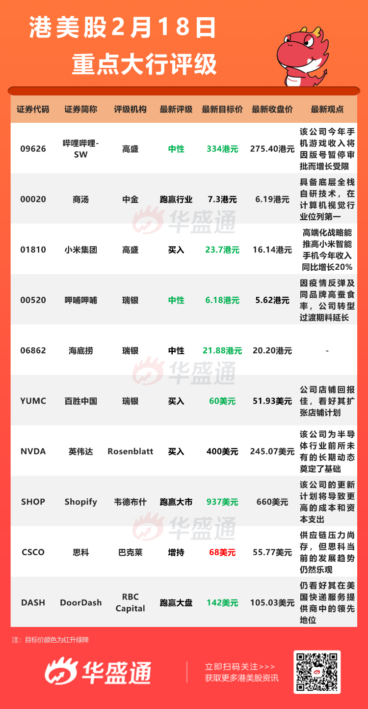 高盛发表研究报告,将哔哩哔哩的投资评级由买入下调至中性,将目标价由817港元大幅下调至334港元。对其变现时间表看法变得更加谨慎,并关注在中国宏观经济疲软,线上游戏及广告垂直行业受监管下的盈利能力及现金流前景。