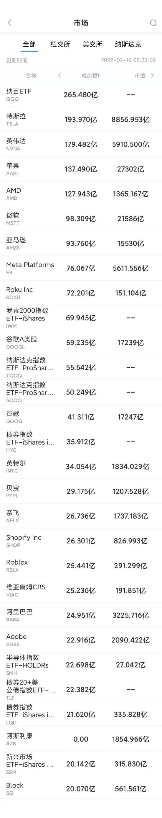 以下为美股当日交易最活跃的20只股票(按成交额):