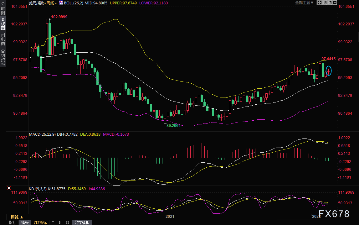 (美元指数周线图)在担心乌克兰局势之际,市场对美联储可能在未来一年加息多达七次的前景感到不安。美国圣路易斯联储主席布拉德周一(2月14日)再次呼吁美联储加快加息步伐。这帮助美元指数在周一创下本周高点。但美联储会议纪要并如如市场预期的那么鹰派,随后美元震荡走弱,周三创下本周低点。