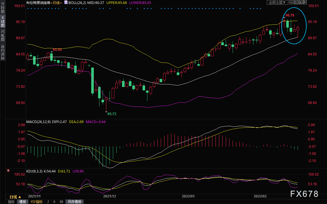 对俄罗斯可能入侵乌克兰的担忧在周一一度帮助油价刷新近七年高点,美原油最高涨至95.82美元/桶,布伦特原油最高涨至96.78美元/桶。