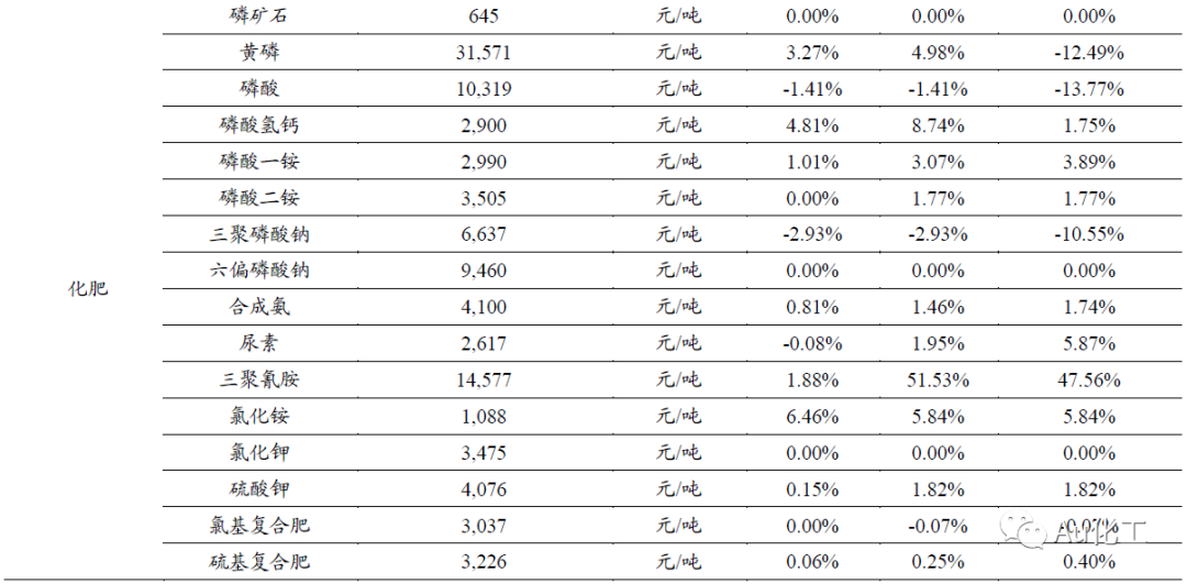 4.1.5、 磷化工及农化产业链:农化产品价格基本稳定