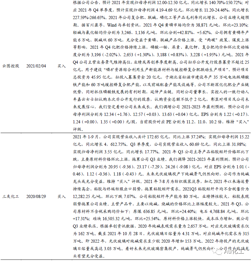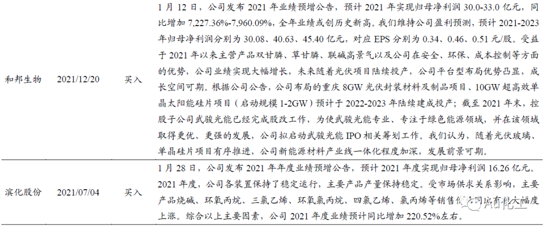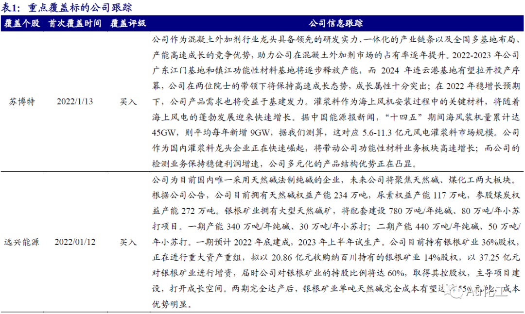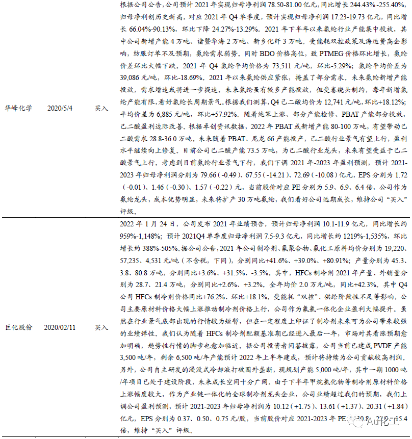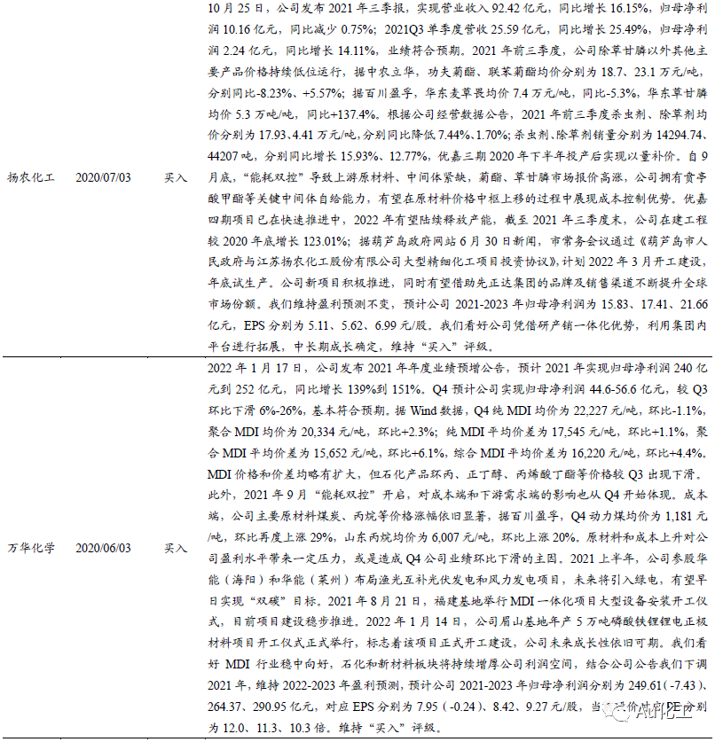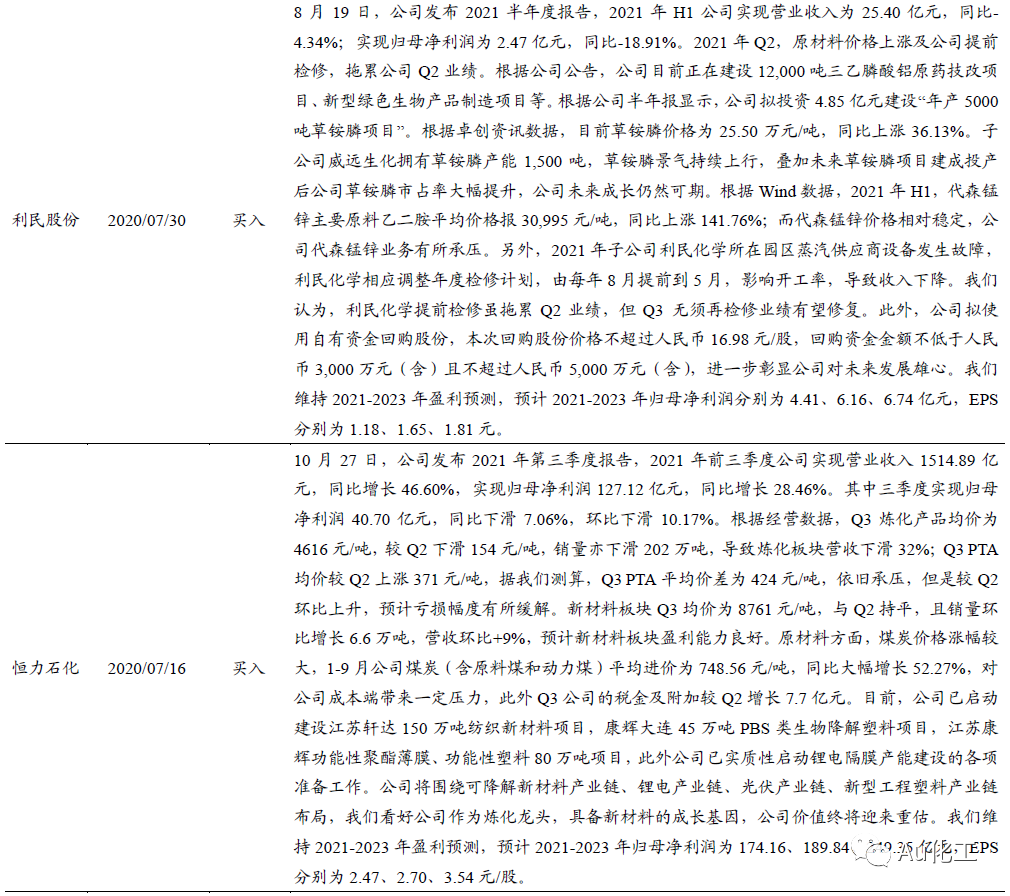 1.1、 覆盖个股跟踪:继续看好远兴能源、恒力石化、华鲁恒升、万华化学、新凤鸣等龙头白马