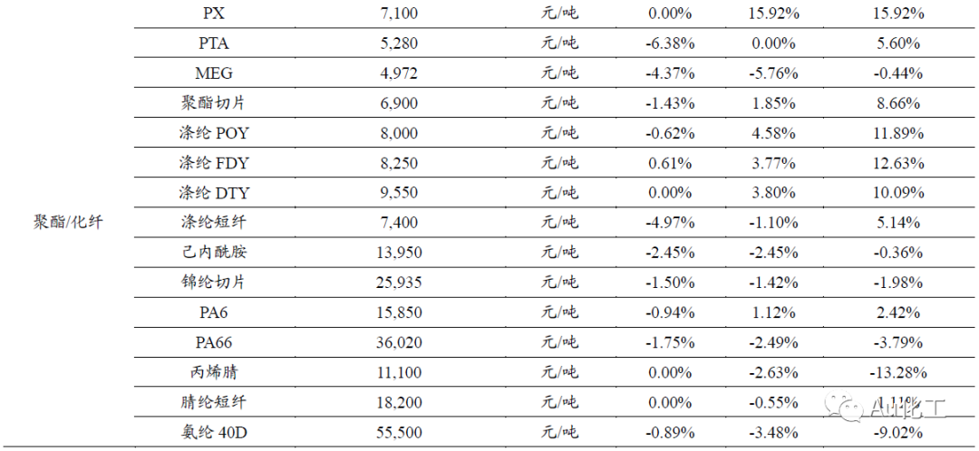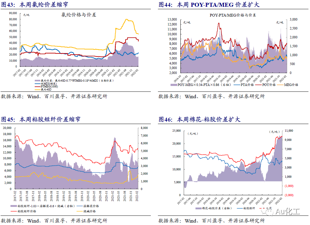 4.1.3、化纤产业链:化纤产业链价差涨跌互现