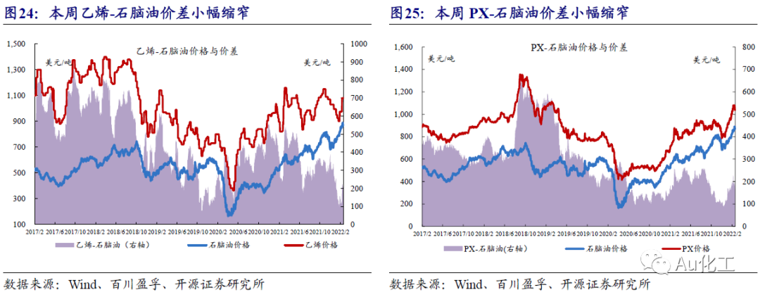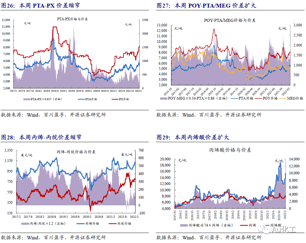 4.1.1、石化产业链:产品价格与价差涨跌互现