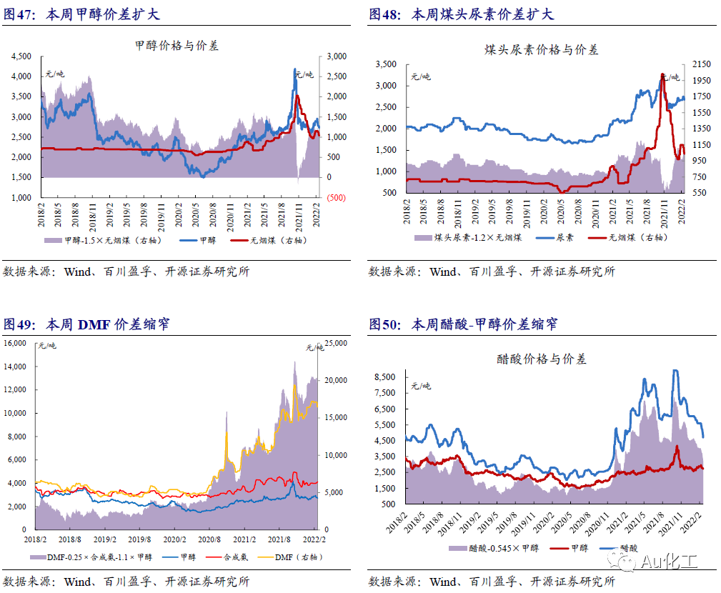 4.1.4、 煤化工、有机硅产业链:煤化工产品价差涨跌互现