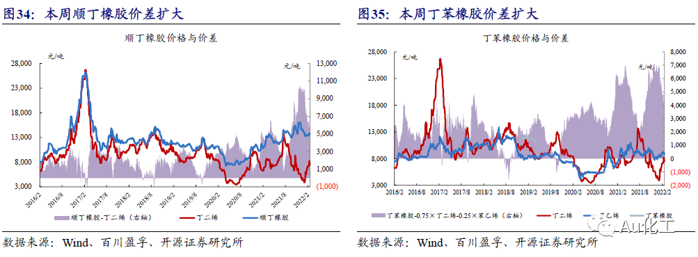 近7日我们跟踪的72种产品价差中,有31种价差较上周上涨,有32种下跌。7日涨幅前五名的价差是:“丙烯酸丁酯-0.59×丙烯酸-0.6×正丁醇”、“环氧乙烷-0.73×乙烯”、“尿素-1.5×无烟煤”、“烧碱-1.584×原盐”、“丙烯-石脑油”;7日跌幅前五名的价差是:“R134a-0.88×三氯乙烯-1.35×氢氟酸”、“甲苯-石脑油”、“PTMEG-1.33×BDO”、“PTA-0.655×PX”、“丁二烯-石脑油”。