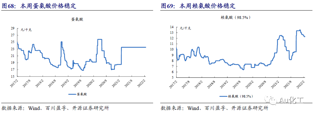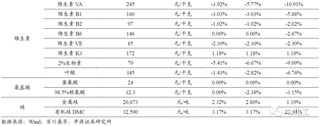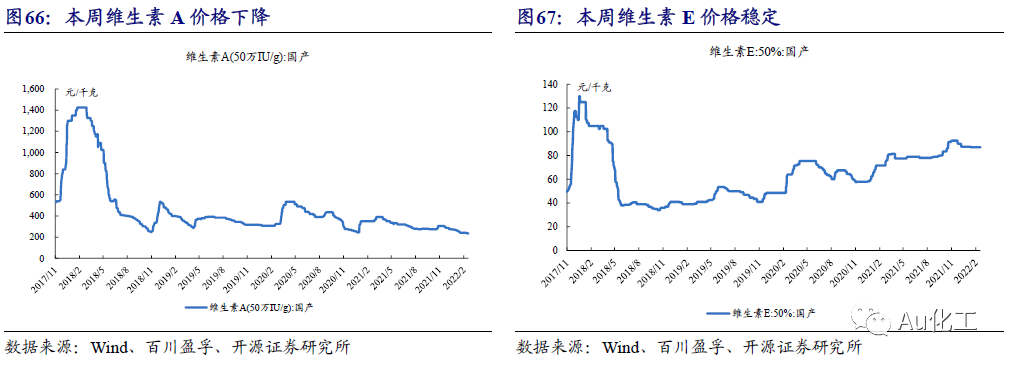 4.1.6、 维生素产业链:维生素产业链价格基本稳定,维生素A价格下降