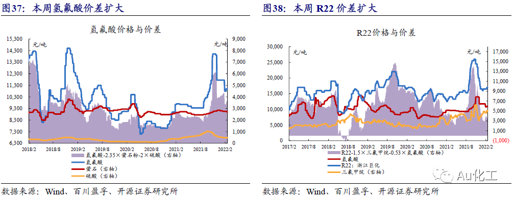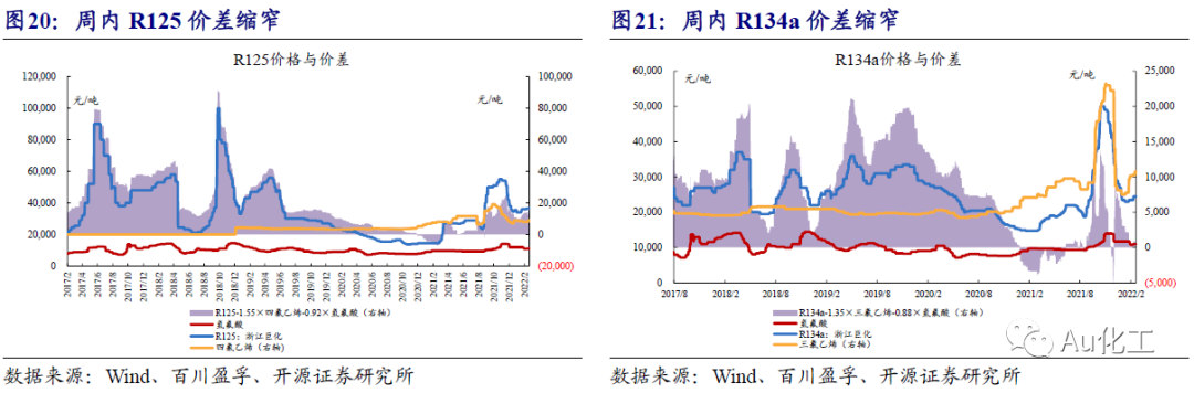 4.1.2、 氟化工:氟化工行业价差涨跌互现