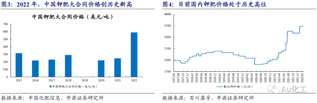 本周行业观点二:2022年钾肥进口大合同尘埃落定,合约价格创历史新高