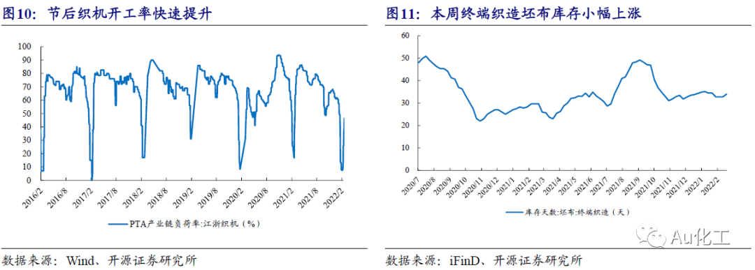 涤纶长丝:本周(2月14日-2月18日)涤纶长丝价格先涨后稳。根据百川盈孚数据,本周涤纶长丝市场价格上涨,截至2月17日,POY150D 产品市场主流商谈价格8,000 元/吨,较上周同期价格下跌50元/吨;FDY150D 产品市场主流价格为8,250元/吨,较上周同期价格上涨50元/吨;DTY150D 产品市场主流价格为9,550 元/吨,与上周同期价格持平。供给端,本周涤纶长丝企业平均开工率约为75.65%,较春节前1月27日开工率上升1.15%。根据Wind数据,截至2月17日,涤纶长丝POY库存天数为26.8天,较2月10日增加2.3天;DTY库存天数为30.7天,较2月10日增加2.2天;FDY库存天数为29.5天,较2月10日增加3.0天,节后累库速度大幅放缓。目前国际油价再创新高,聚酯原料端走势偏强,成本压力较大。节后,下游坯布价格多有上调预期,叠加新一季订单下达,市场需求或将有所好转。节后,涤纶长丝主流厂商装置或有轮流检修计划,市场供应将有所下滑,对长丝市场有强有力的支撑。受益标的:新凤鸣、恒力石化、荣盛石化。