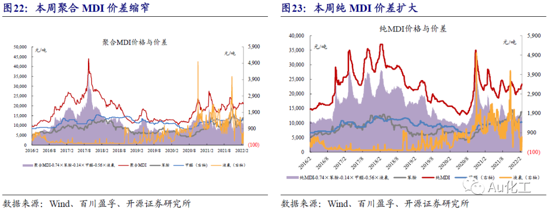 本周(2月14日-2月18日)纯MDI价差扩大。
