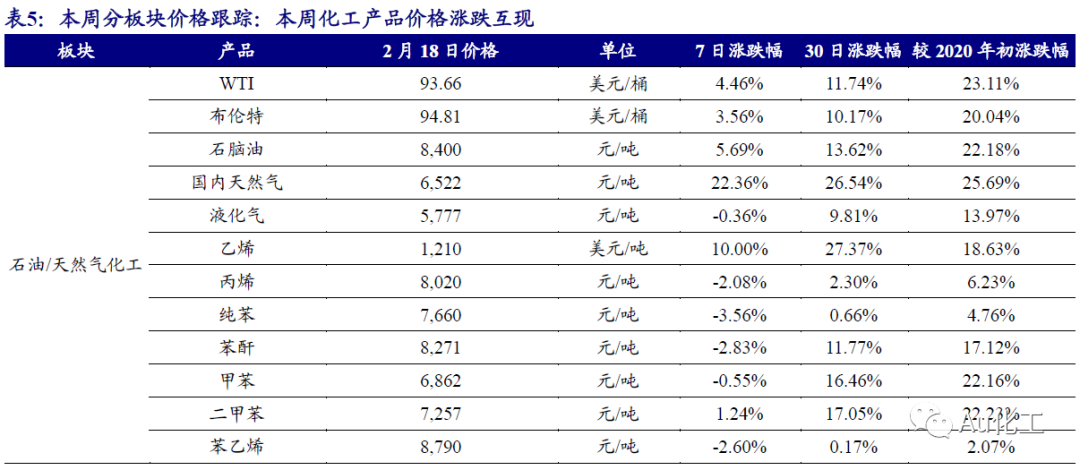本周化工行情跟踪及事件点评:化工品价格涨跌互现