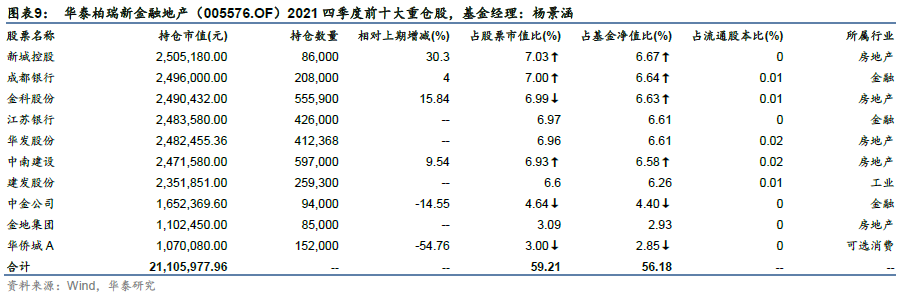 杨景涵管理的华泰柏瑞新金融地产(005576.OF)主要投资于金融和房地产行业,因此今年以来业绩表现较优。