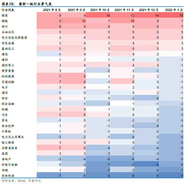景气度跟踪:景气度下行区间,推荐煤炭、钢铁、银行、石油石化、电新