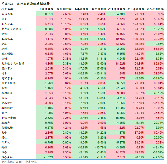 景气度跟踪:煤炭、钢铁、银行、石油石化、电新