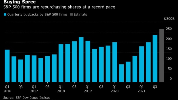 据彭博(Bloomberg)汇编的数据,企业正利用在疫情期间积累的现金储备大幅增加回购。上季度标普500指数成份股公司十大回购的总额为860亿美元,较去年同期增长近30%。苹果公司、Meta平台公司和谷歌母公司Alphabet Inc.引领了这轮回购潮。
