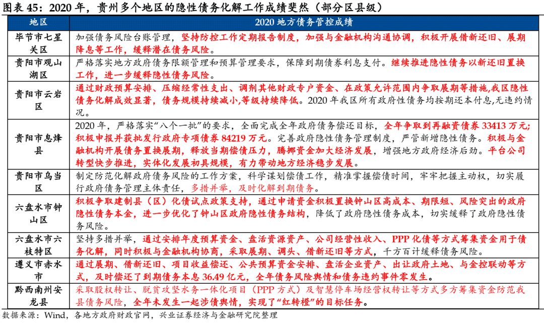 贵州多个地区在2020年财政决算报告中也提到了具体的化债成绩单。