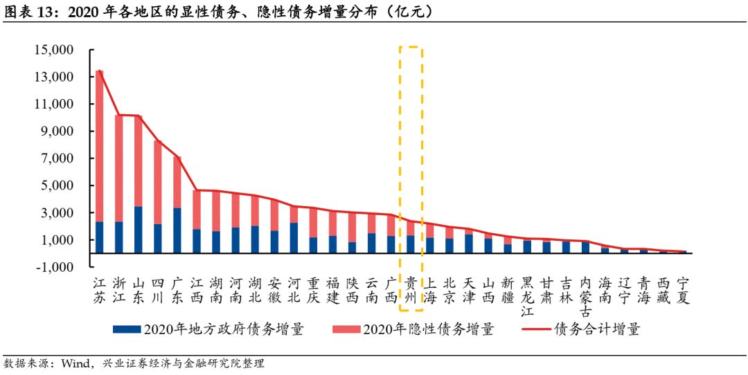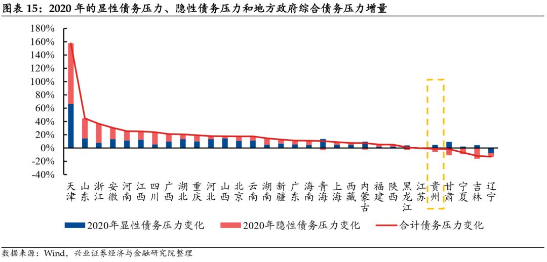 从增量角度来看,由于隐性债务压力下降了-6.04%,贵州省2020年的综合债务压力有所缓解。