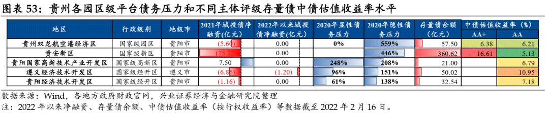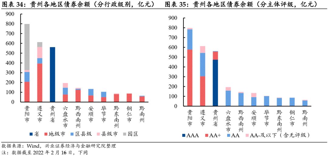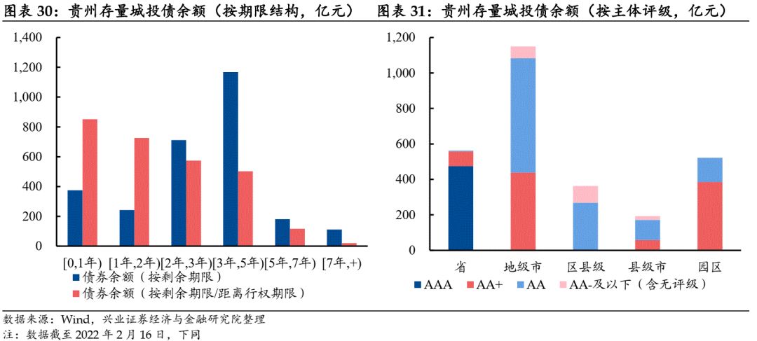 2)对于地级市、区县级/县级市、园区级平台,投资者可以关注诸如贵阳地级市平台和贵阳云岩区、南明区、清镇市等地的区县级/县级市平台,及未来政策支持确定性高、债务压力有望边际改善地区的存量债机会;