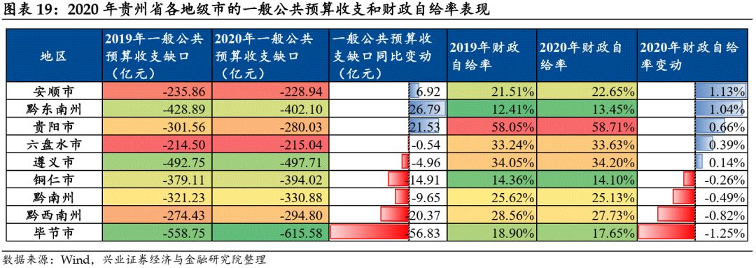 财政实力维度:考虑到数据可得性,本部分主要对贵州各地级市2020年财政数据进行分析,2020年各地级市的财政表现分化明显。