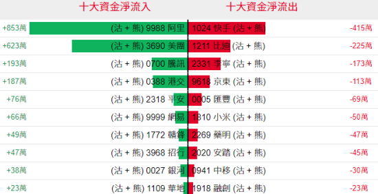 淡仓(认沽证及熊证)方面,上周五阿里相关淡仓获853万港元资金净流入;快手相关淡仓见资金净流出。