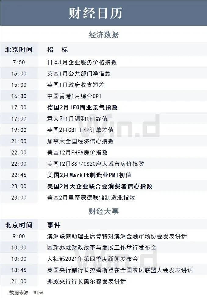 2月21日(周一)为美国“华盛顿诞辰纪念日”,美股休市一天,2月22日(周二)今日恢复正常交易。