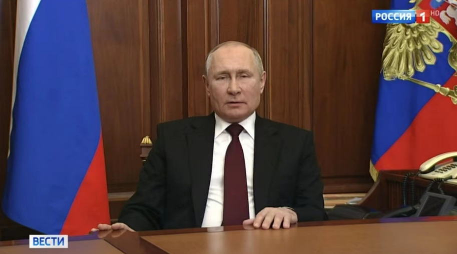 当地时间2月21日,俄罗斯总统普京发表全国视频讲话,宣布承认乌东民间武装自称的顿涅茨克人民共和国和卢甘斯克人民共和国为独立国家。