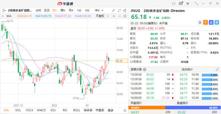 (3)2倍做多金矿指数 $JNUG