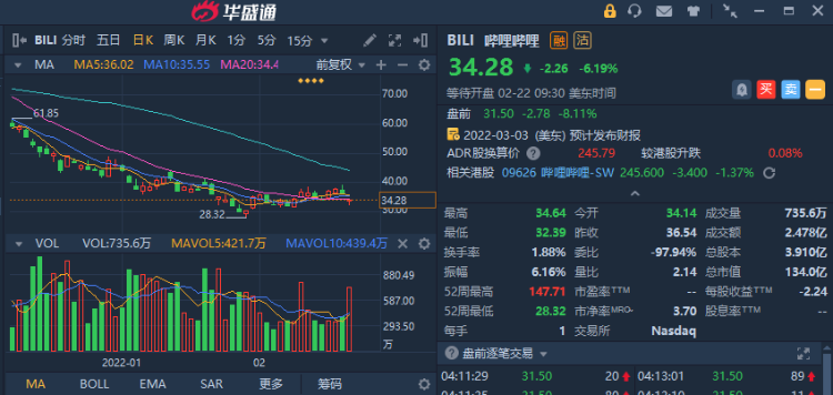 华盛资讯2月22日消息,美股大型科技股盘前集体下挫,苹果(AAPL)、Meta Platform(FB)跌超2%,特斯拉(TSLA)跌超3%。中概股盘前普遍走低,哔哩哔哩(BILI)、新东方(EDU)跌超8%,蔚来汽车(NIO)、拼多多(PDD)、雾芯科技(RLX)跌超6%,阿里巴巴(BABA)、好未来(TAL)跌超4%。