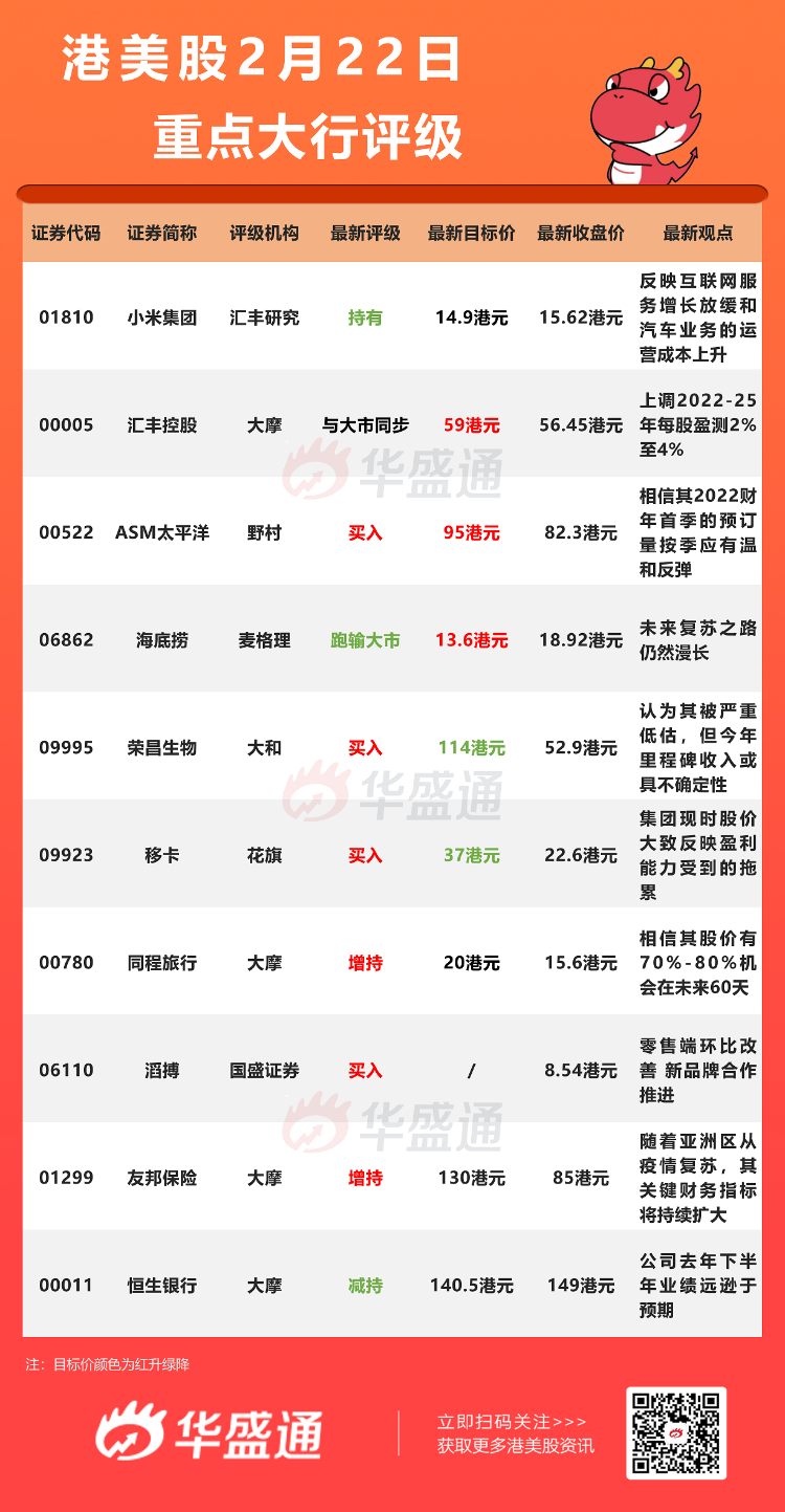 汇丰研究发表报告,将小米集团2022年至2023年的净利润预测下调4%至8%,以反映互联网服务增长放缓和汽车业务的运营成本上升。